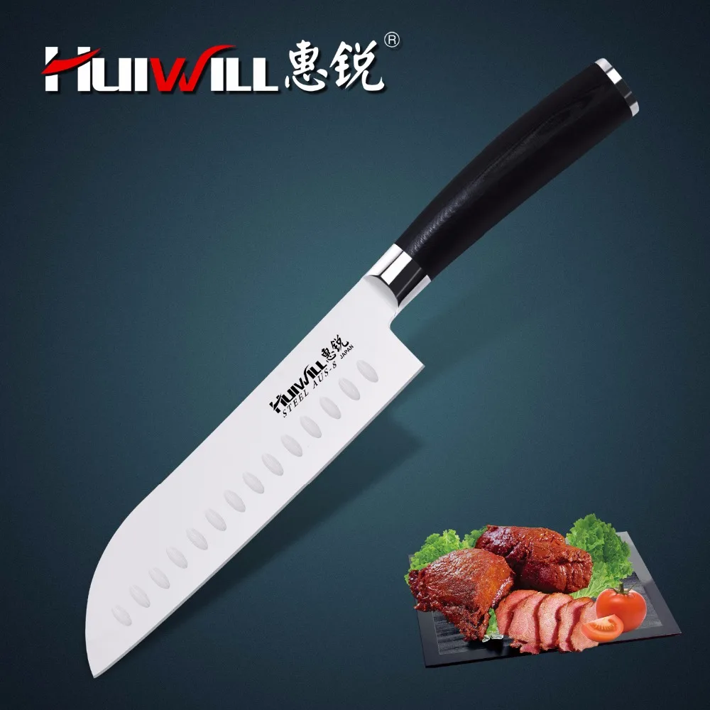 Best Quality Huiwill brand 7"Japanese AUS 8 stainless steel Santoku chef kitchen knives utility knife kitchen wi