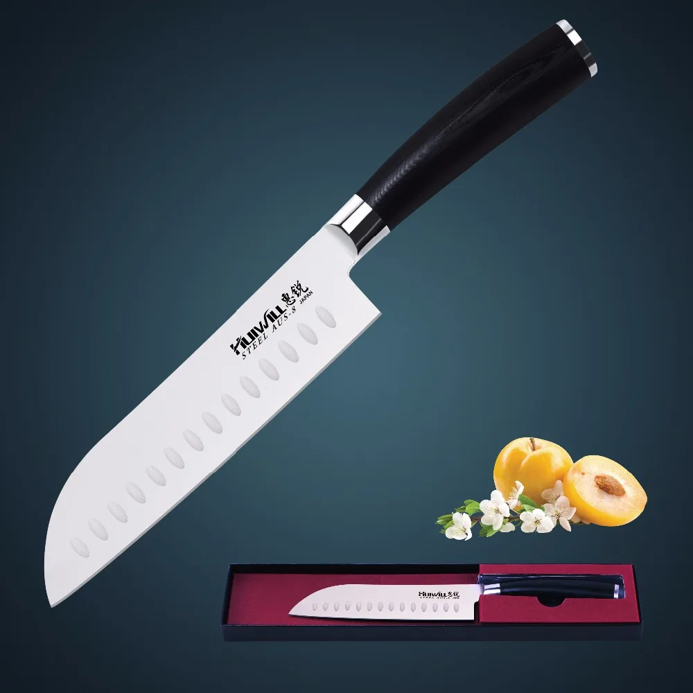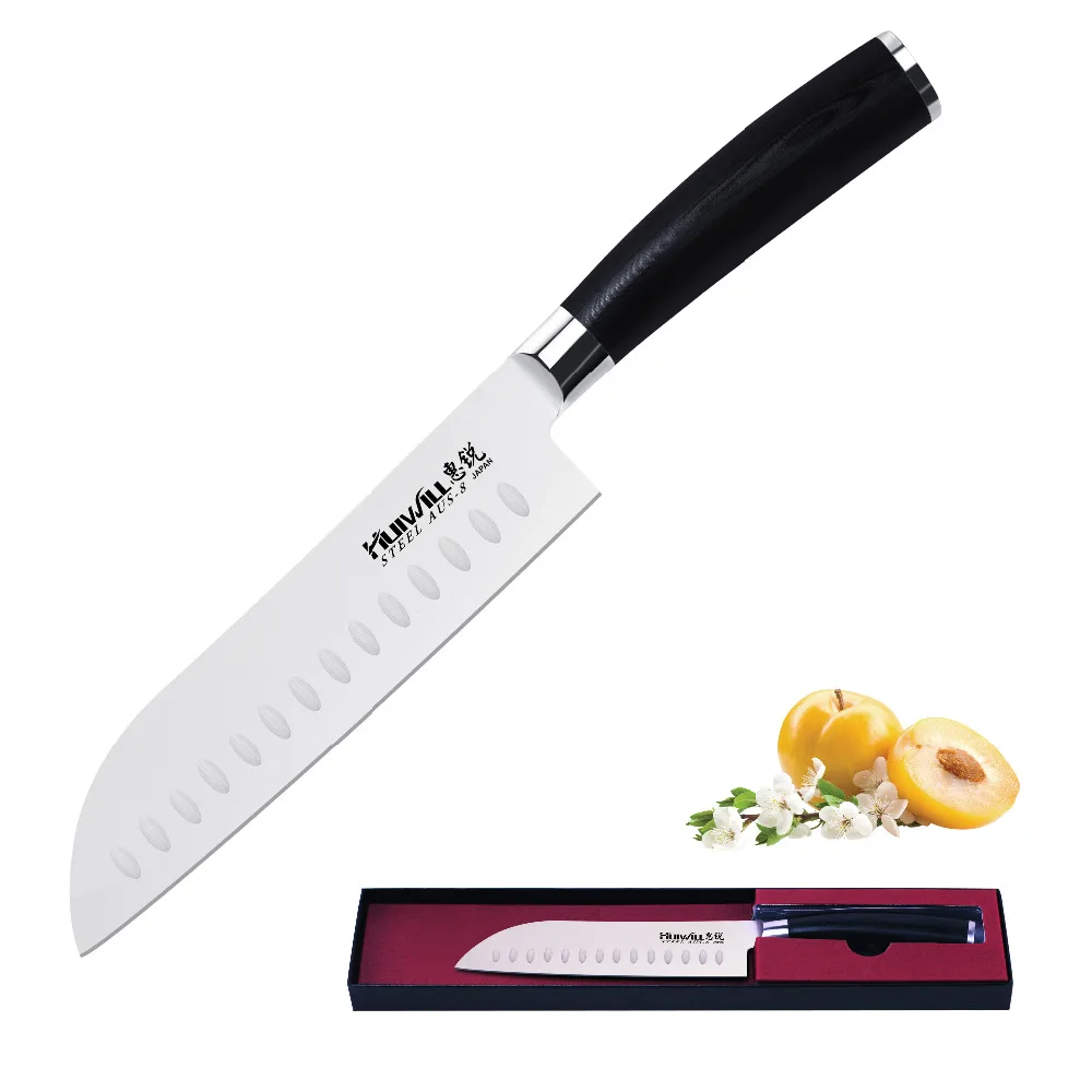 BEST QUALITY Huiwill brand 7"Japanese AUS 8 stainless steel Santoku chef kitchen knives utility knife kitchen wi