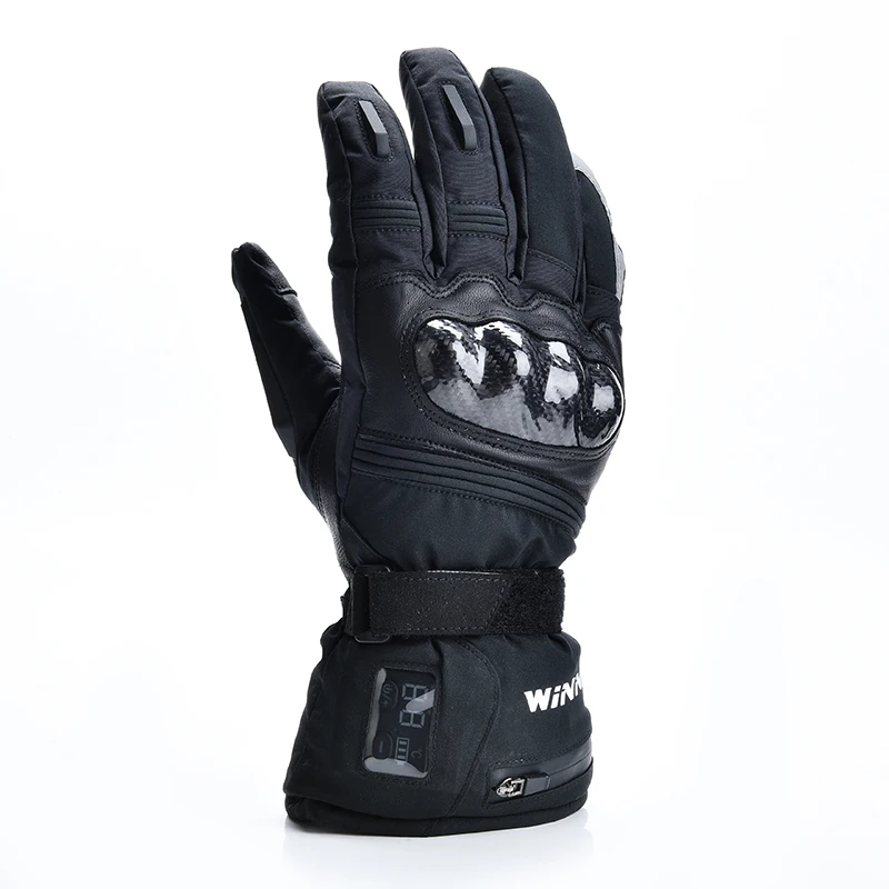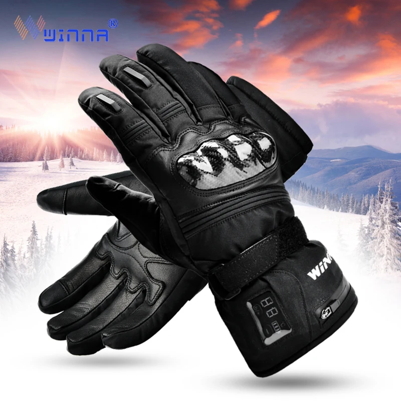Winter Electric Heated Gloves with Carbon Fiber Protective Case Leather Waterproof Thermal Gloves f