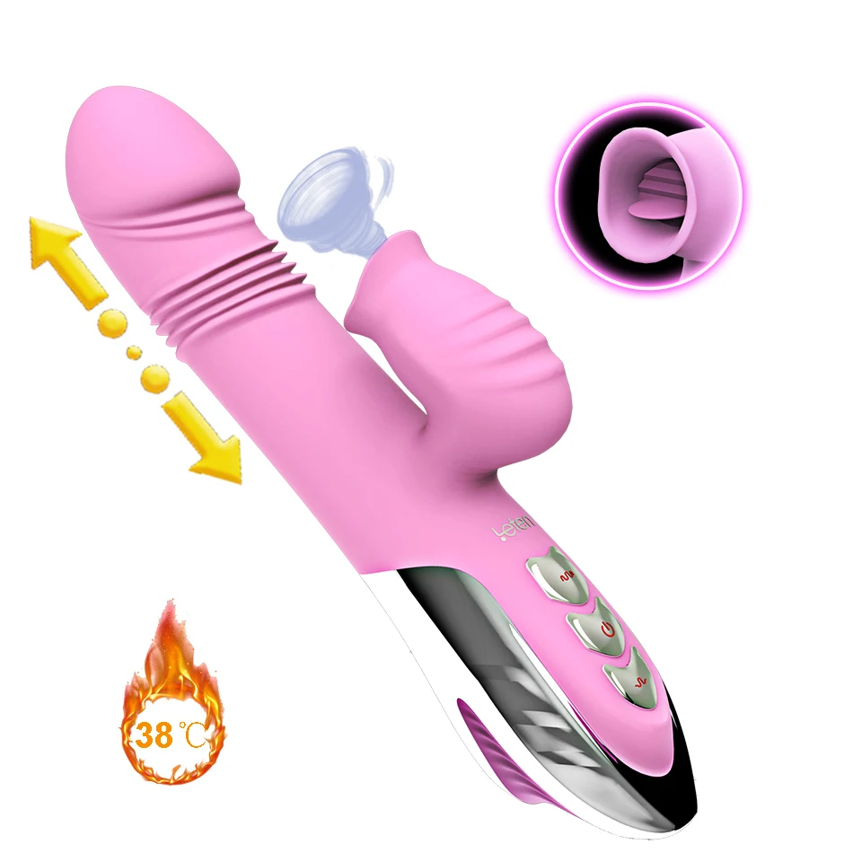 HOT Sale Automatic Telescopic Heating Dildo Vibrator Tongue Licking Clit Vibrator Vaginal Sucker G spot Mass