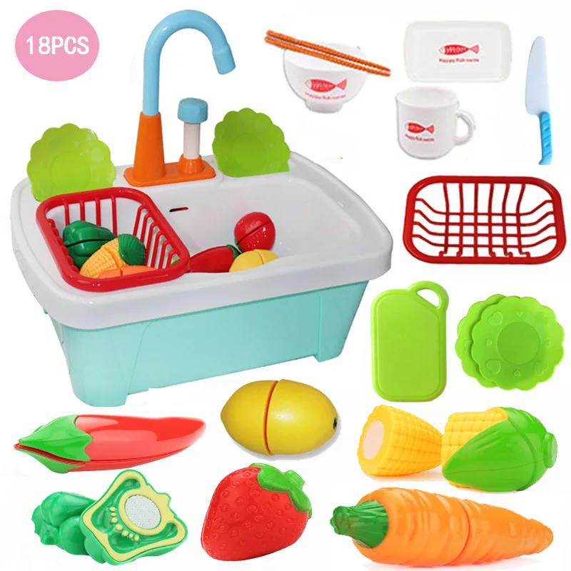 Children Kitchen Toy Small Pool Play House Slicer Automatic Cycle Sink Toy Washing Basin