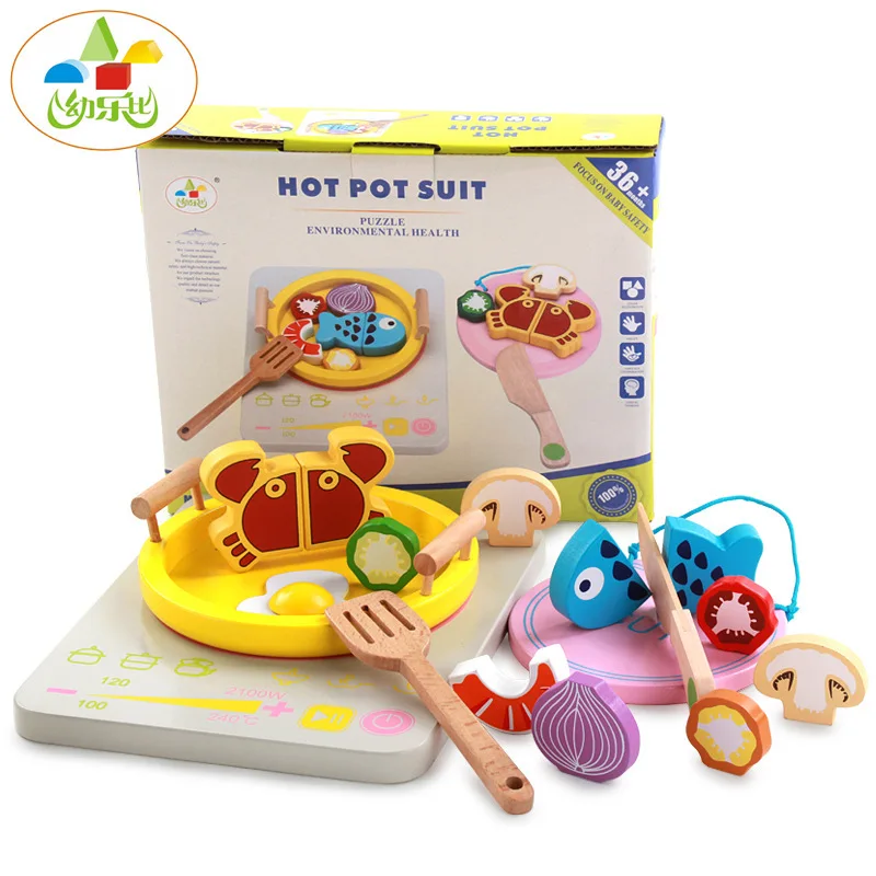 HOT Sale Wooden Hot Pot Set MS16 Model Electromagnetic Furnace Children Play House Kitchen 2-6-Year-Old Educ