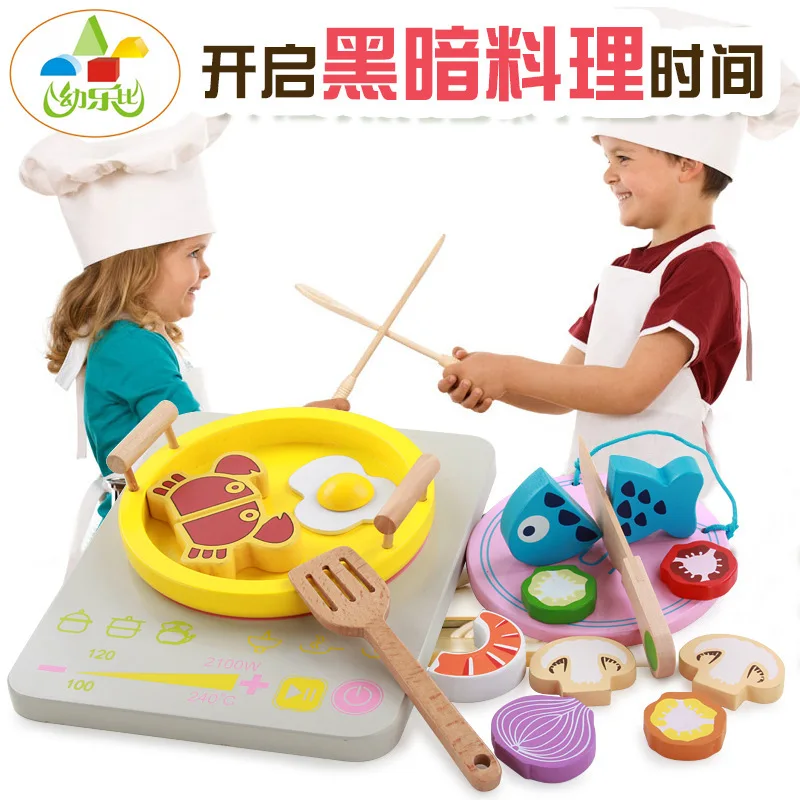 Wooden Hot Pot Set MS16 Model Electromagnetic Furnace Children Play House Kitchen 2-6-Year-Old Educ