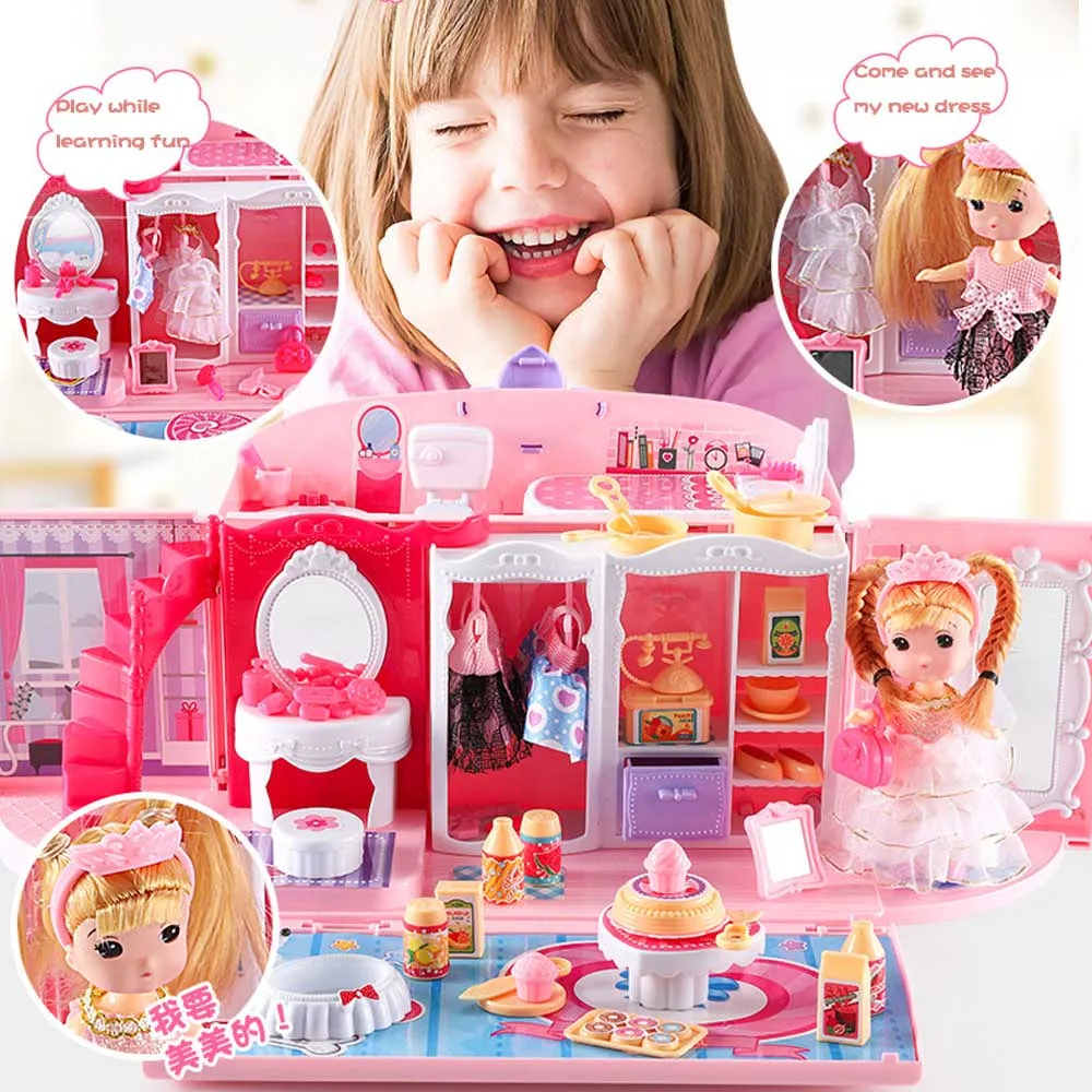 TOP new Children's Girls Toys Girl Dreams Handbag Play House Princess Toy Handbag Bedroom Kitchen Play