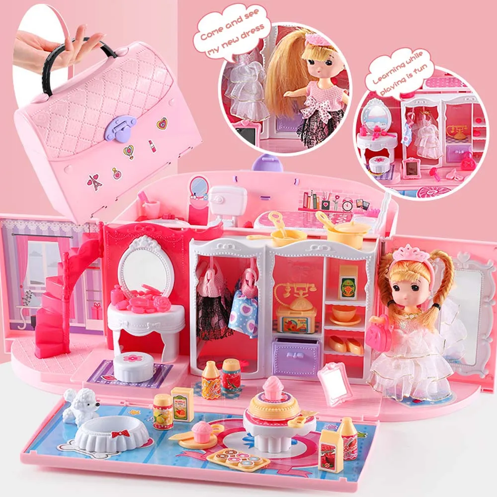 HOT Sale new Children's Girls Toys Girl Dreams Handbag Play House Princess Toy Handbag Bedroom Kitchen Play